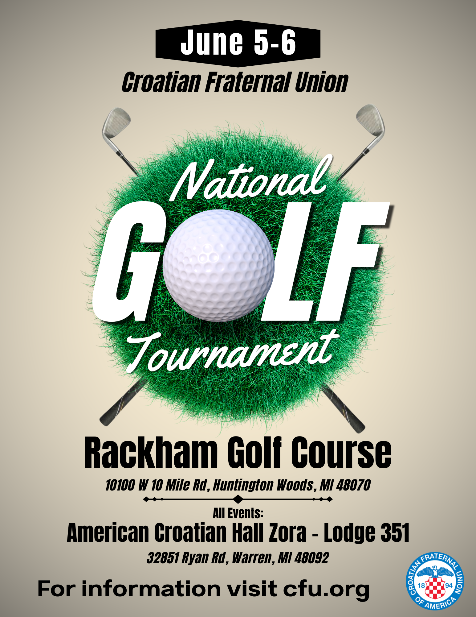 Rackham Golf Course. As we celebrate this milestone event, golfers from across the CFU community will gather for two days of competition, camaraderie, and Croatian fraternal spirit in the Detroit area.